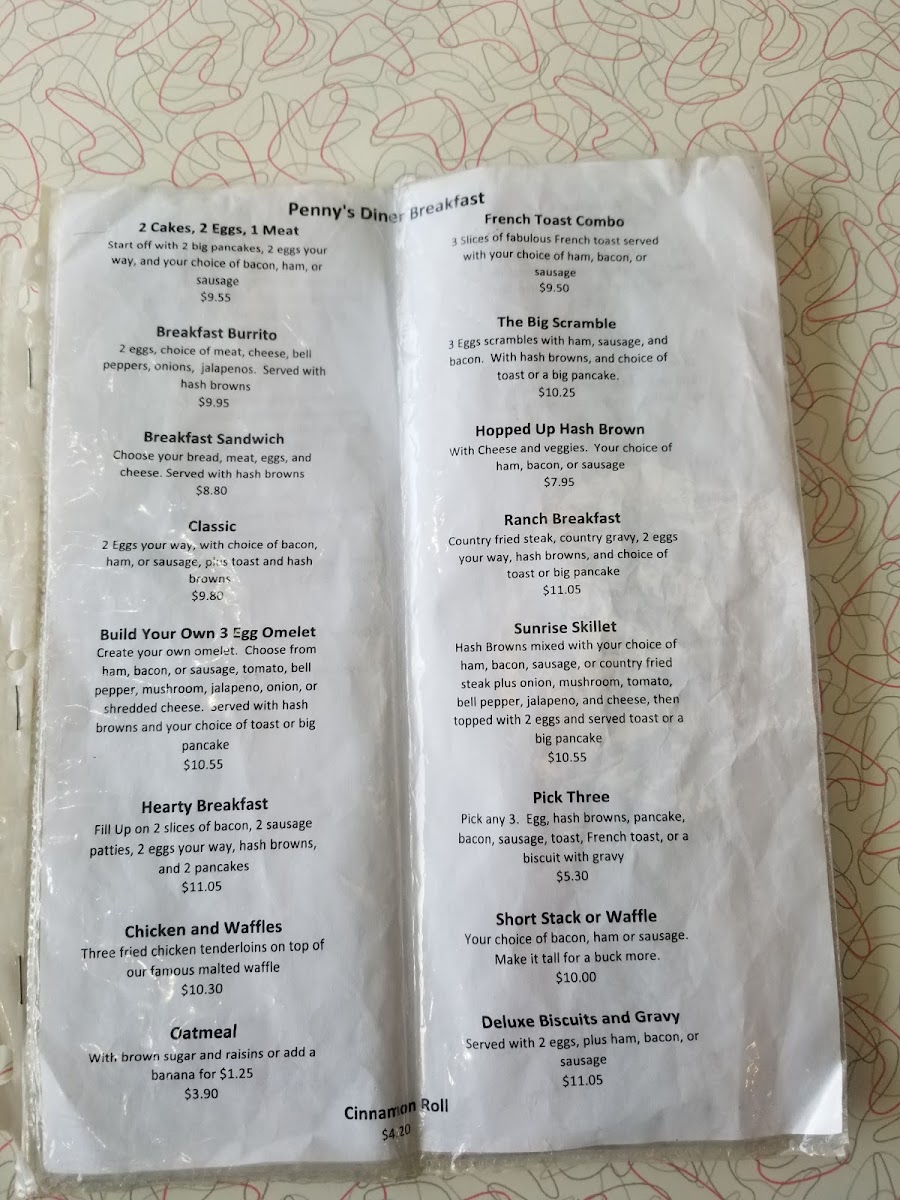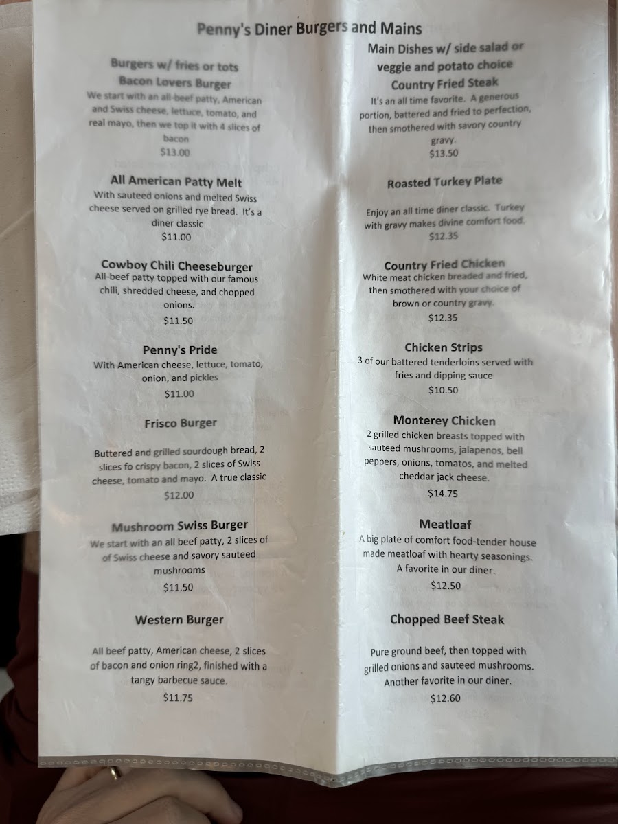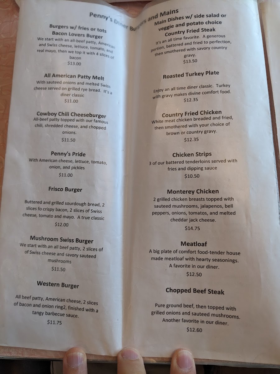Penny's Diner Menu