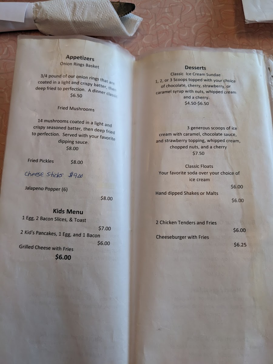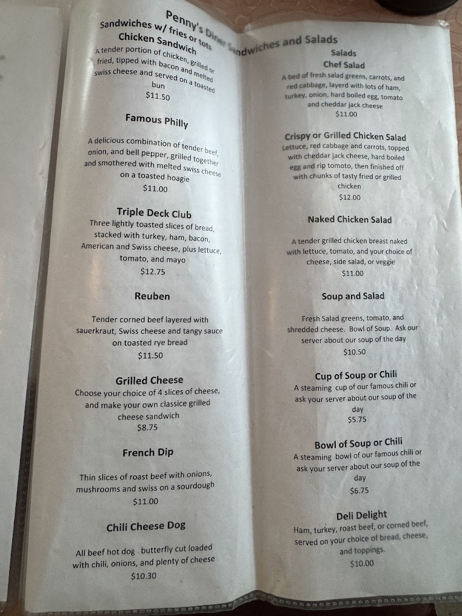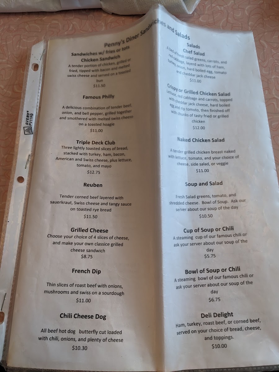 Penny's Diner Menu